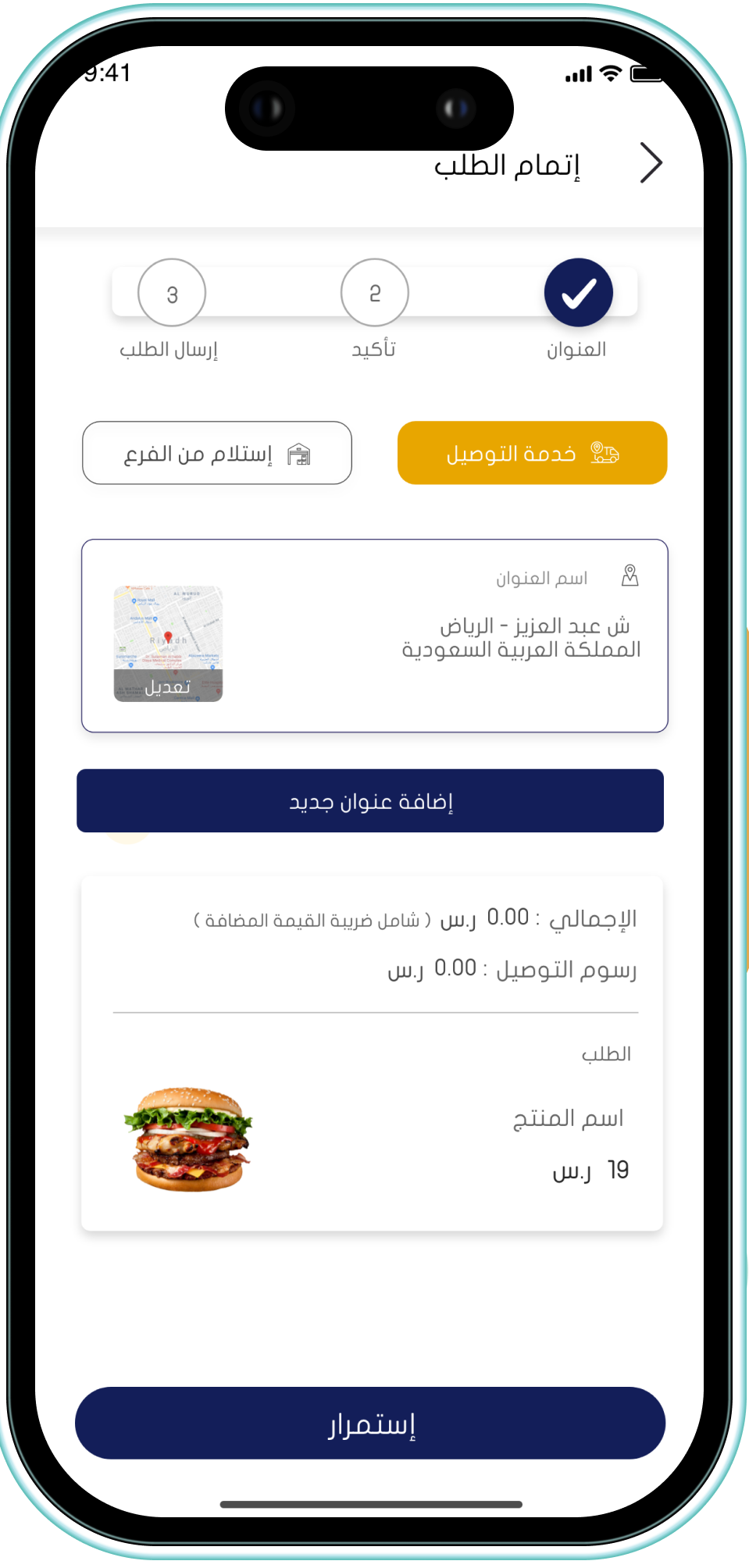 إمكانية طلب الوجبات واستلامها بسهولة عبر خدمة التوصيل إلى موقعك بدقة وسرعة.